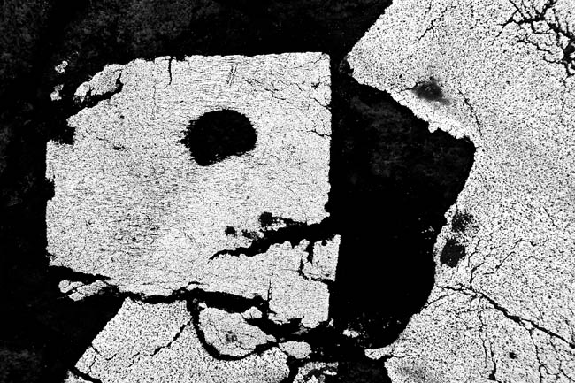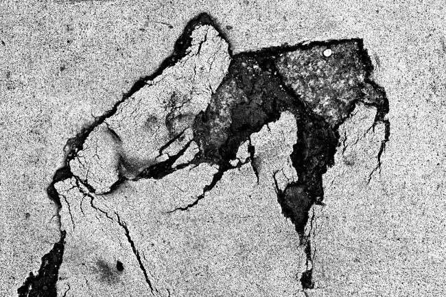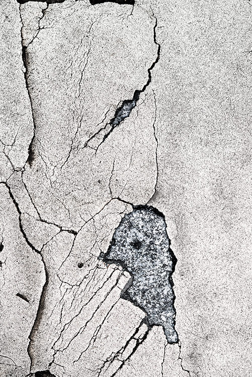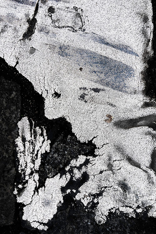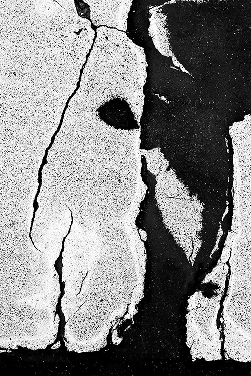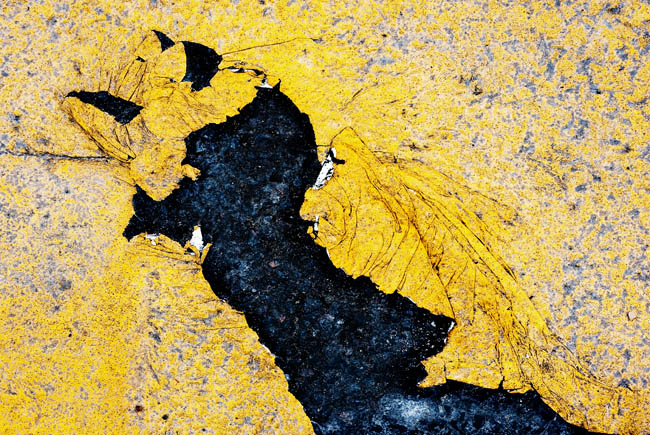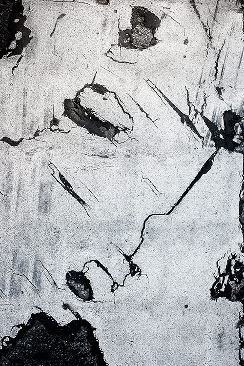 Abstrakte Bilder, bisweilen Radierungen ähnlich – dabei sind es Detailaufnahmen von Zebrastreifen in Paris, an denen Wetter, Fahrzeuge und die Zeit genagt haben.